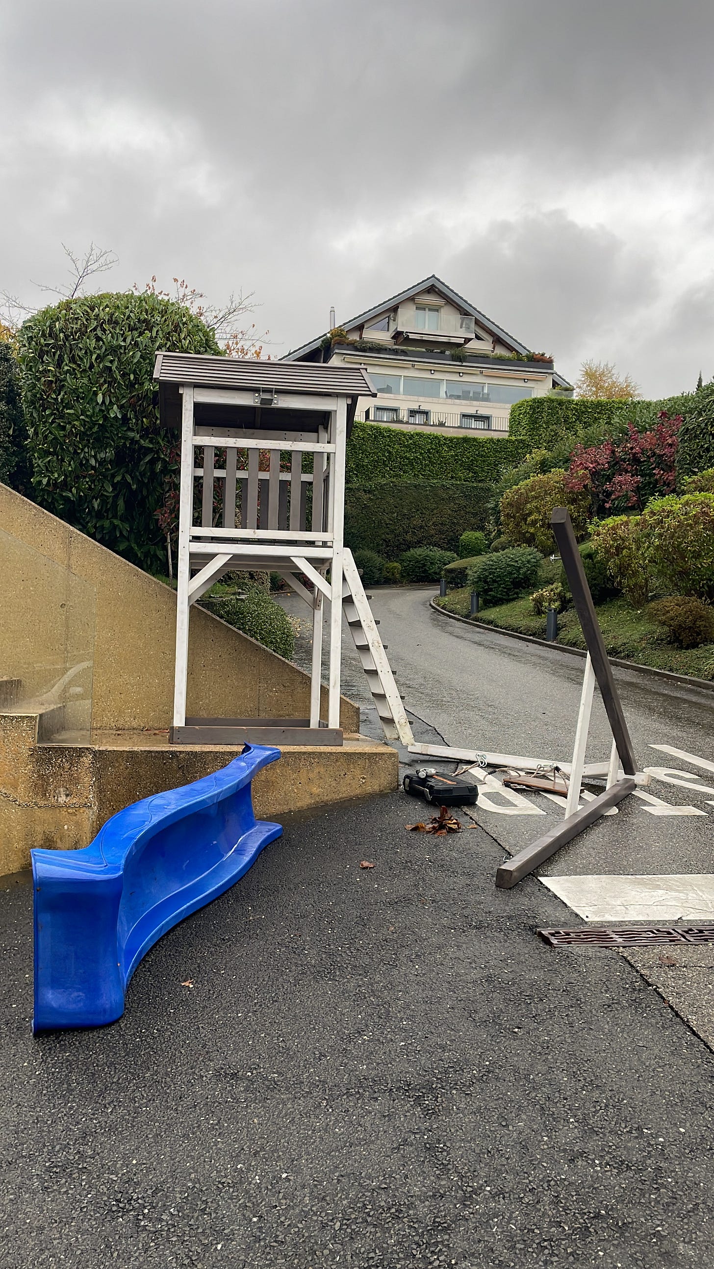 On Sunday afternoon, I went to Geneva. My host family was going there to take the girls to a “Jungle show” and I tagged along for the ride. In Geneva, I met up with a friend and we went for a 10K run along the lake with her dog. It was fun to run with someone and chat, and we talked about signing up to run the Geneva marathon in May together. We’ll see if that actually happens! Before we left for Geneva, “A” told me that “E” went to get a swing set for the girls and we needed to meet him on the way to Geneva. We drove about 30 minutes to meet “E” and help him load the swing set into a trailer, and then we left the car with the trailer in a parking lot off the highway to come back for on our way home. It was a pretty funny and semi-chaotic detour, but I think it will be worth it and the girls will really enjoy their new swing set!