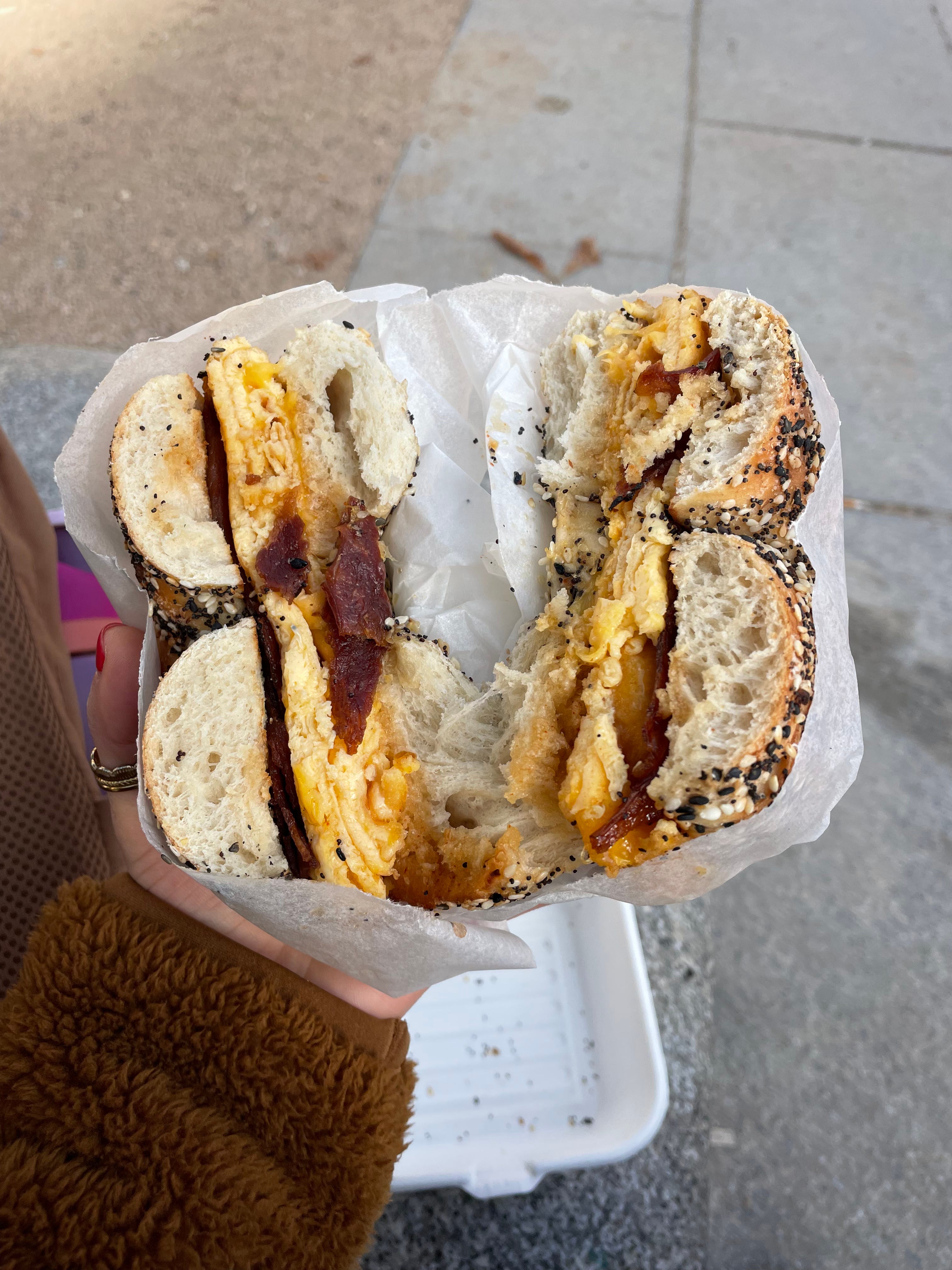 On Tuesday, I broke in my new sneakers and ran to a smaller park/track where I used to run a lot in my last few months before leaving Madrid, and then got an NYC-style bagel. After work I had a pincho de tortilla for lunch and wandered around the city a bit before meeting my friend and former roommate to get our nails done. Then we met some other friends at an artisan pizza shop for dinner, and after I met up with different friends for drinks. It was a really nice way to end my trip :)